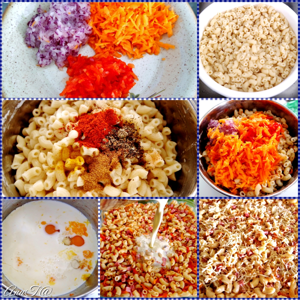 - Voitele laakea uunivuoka ja kaada makaroniseos siihen.